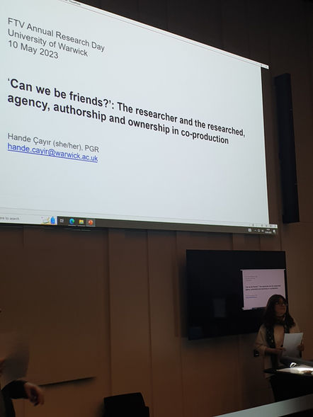‘“Can we be friends?”: The researcher and the researched, agency, authorship and ownership in co-production,’ FTV Annual Departmental Research Day, University of Warwick, UK, 10 May 2023.